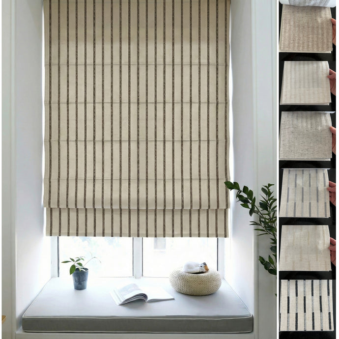 Handwoven Neutral Linen Embroidery Stripe Window Roman Shade