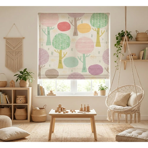 Whimsy Forest Colorful Trees Window Roman Shade