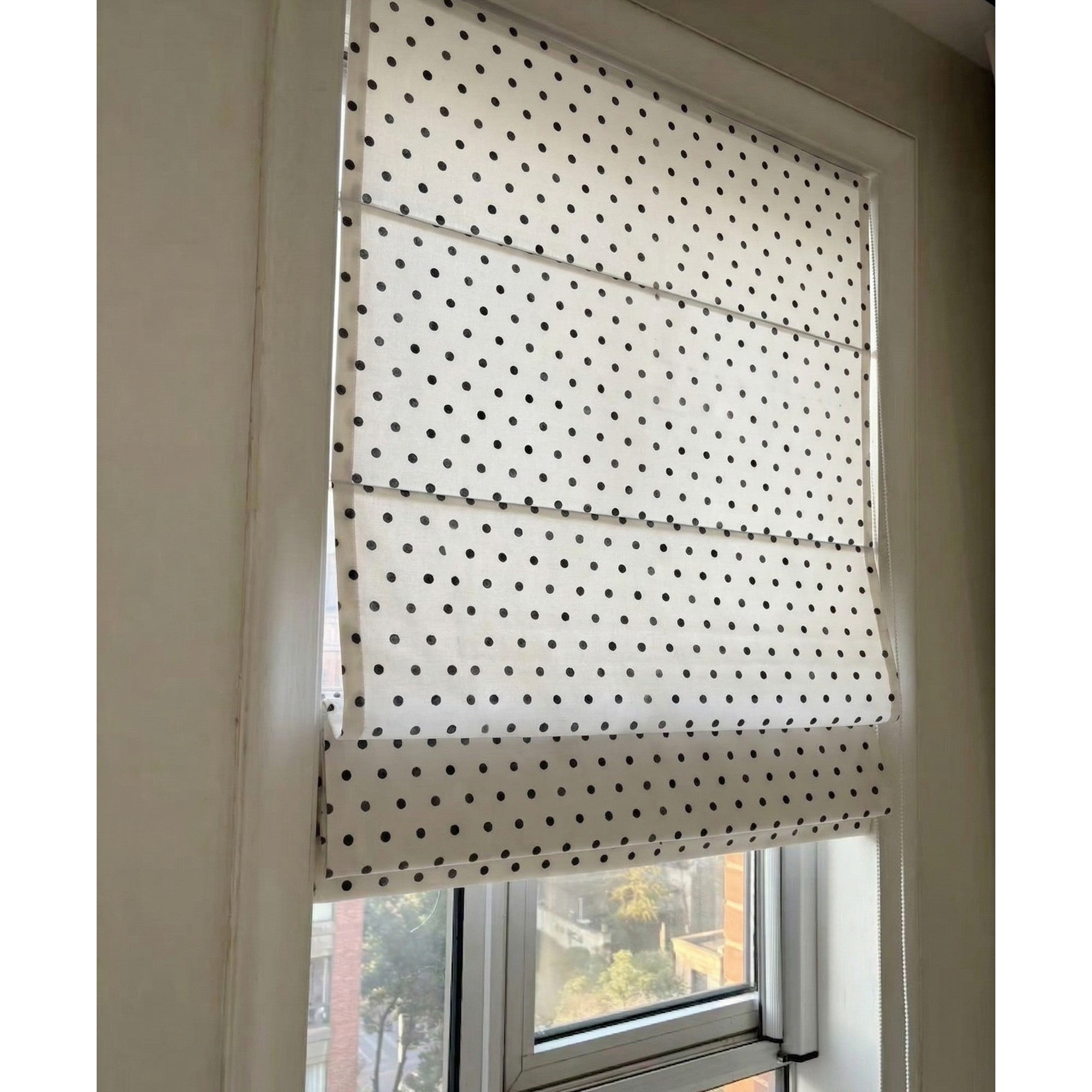• Load image into Gallery viewer, Ink Drop Modern Black and White Polka Dot Window Roman Shade